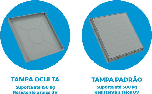 A Caixa de Gordura ASTRA possui duas opções de tampa de alta durabilidade e resistência.