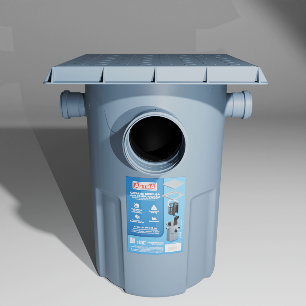 A Caixa de Gordura Astra é produzida de acordo com a norma NBR 8160, possui 18L de capacidade e é fabricada em Polipropileno (PP) de alta resistência, seguindo um rigoroso controle de qualidade. O resultado é um produto durável, e pronto para atender às exigências de obras e reformas.